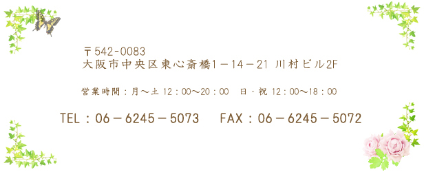 ■別嬪&夢鳥の道順のご案内 夢鳥のレンタル商品はすべて別嬪店舗内にてご覧いただけます。 心斎橋の大丸と大丸北館(旧そごう)の間の道を東へ入り心斎橋から2本目の笠屋町筋を南(右)へ曲がります。 15mほど進んだら左手に川村ビルがございます。当ビルに向かって右手の階段を上った正面に別嬪がございます。 << クリックにて拡大します >> Yahoo! 地図へのリンクはこちら