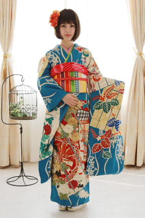1 振袖 2 袋帯 3 襦袢 4 半襟 5 重ね襟 6 帯締め 7 帯揚げ 8 草履 9 バック 10 ショール