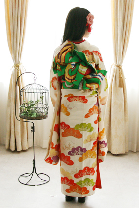 1 振袖 2 袋帯 3 襦袢 4 半襟 5 重ね襟 6 帯締め 7 帯揚げ 8 草履 9 バック 10 ショール