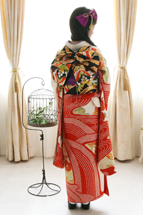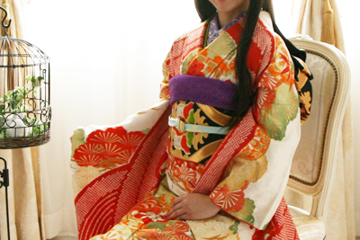 1 振袖 2 袋帯 3 襦袢 4 半襟 5 重ね襟 6 帯締め 7 帯揚げ 8 草履 9 バック 10 ショール
