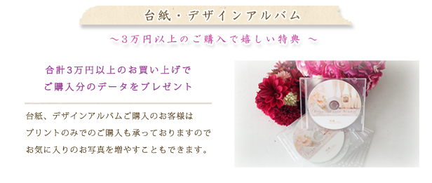 華やかなデザインアルバムや可愛い台紙アルバムを多数ご用意しております。